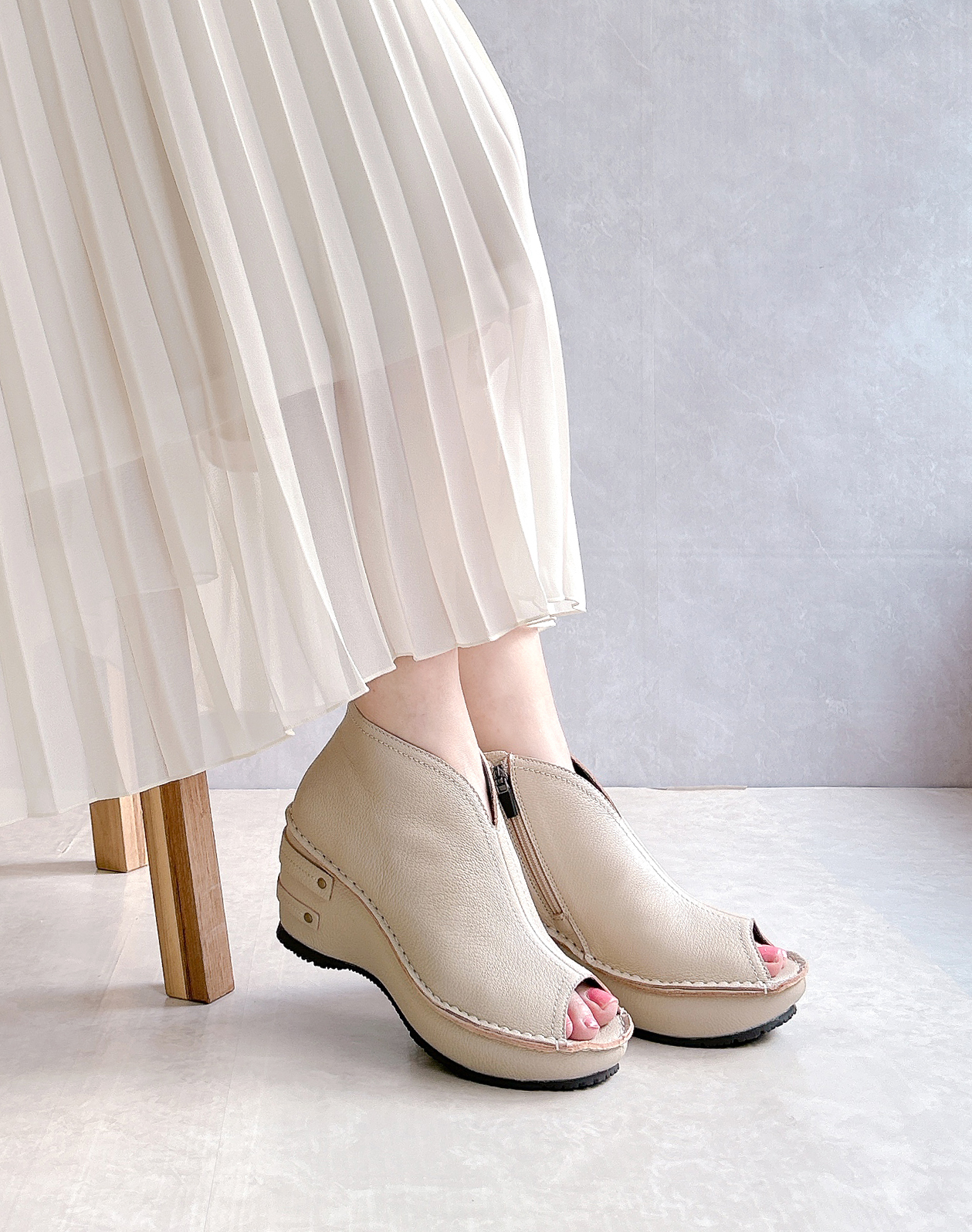 革の風合いや、新鮮なカラーリングはシンプルながら個性的な足元を彩ります。「革を育てる」ことで独特の艶と陰影が生まれます。時を経ても色褪せることのない、大切なマイ.スタンダード。